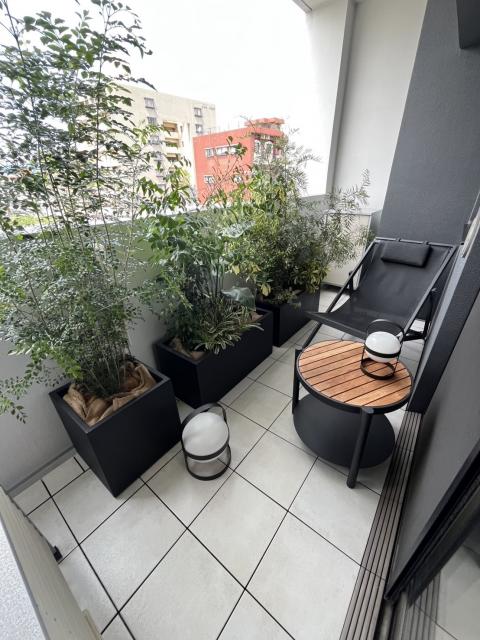 限られたスペースですが、植物の配置を工夫して、奥行きを感じられるようにしました。手入れが大変にならないように、育てやすく、あえて鉢のままで着せ替えのできるようにしました。忙しい毎日の中でも、このベランダが、お客様にとって心をリセットできるオアシスのような特別な場所になってくれたら嬉しいです。