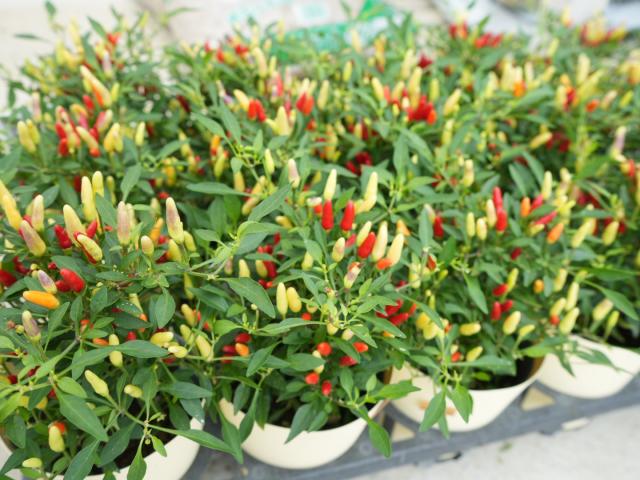 赤・黄・オレンジ・紫と色とりどりに熟していく実は、長く鑑賞でき、寄せ植えや鉢植えのアクセントにぴったりです(*^^*)