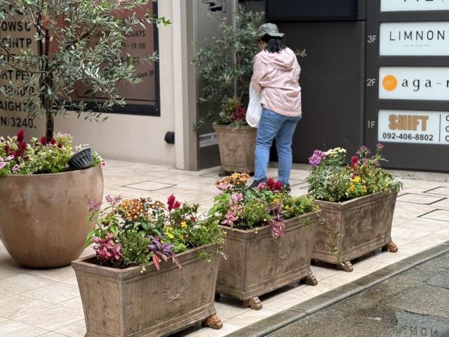 福岡市中央区の店舗前植栽をさせていただきました。